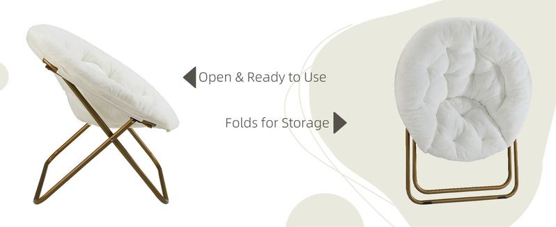 Cozy Saucer Chairs Faux Fur Living Room Reading Lounge Furniture Folding Comfy with Soft Thick Padded Seat Metal Frame Modern Style for Bedroom Home