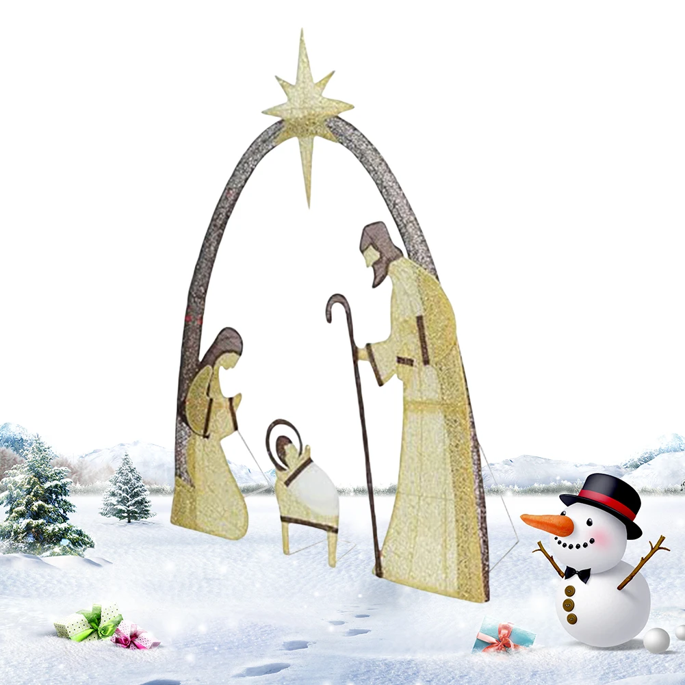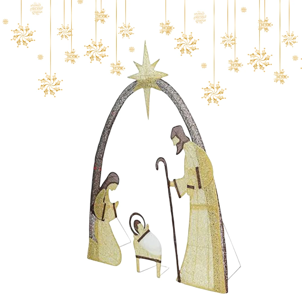 2. Weather-Resistant and Long-Lasting: Crafted with a golden frame and glitter materials, this outdoor Nativity scene decoration shines brightly throughout the winter season. The supportive design at the back enhances stability, allowing it to withstand harsh weather, making it a reliable choice for your outdoor decor.