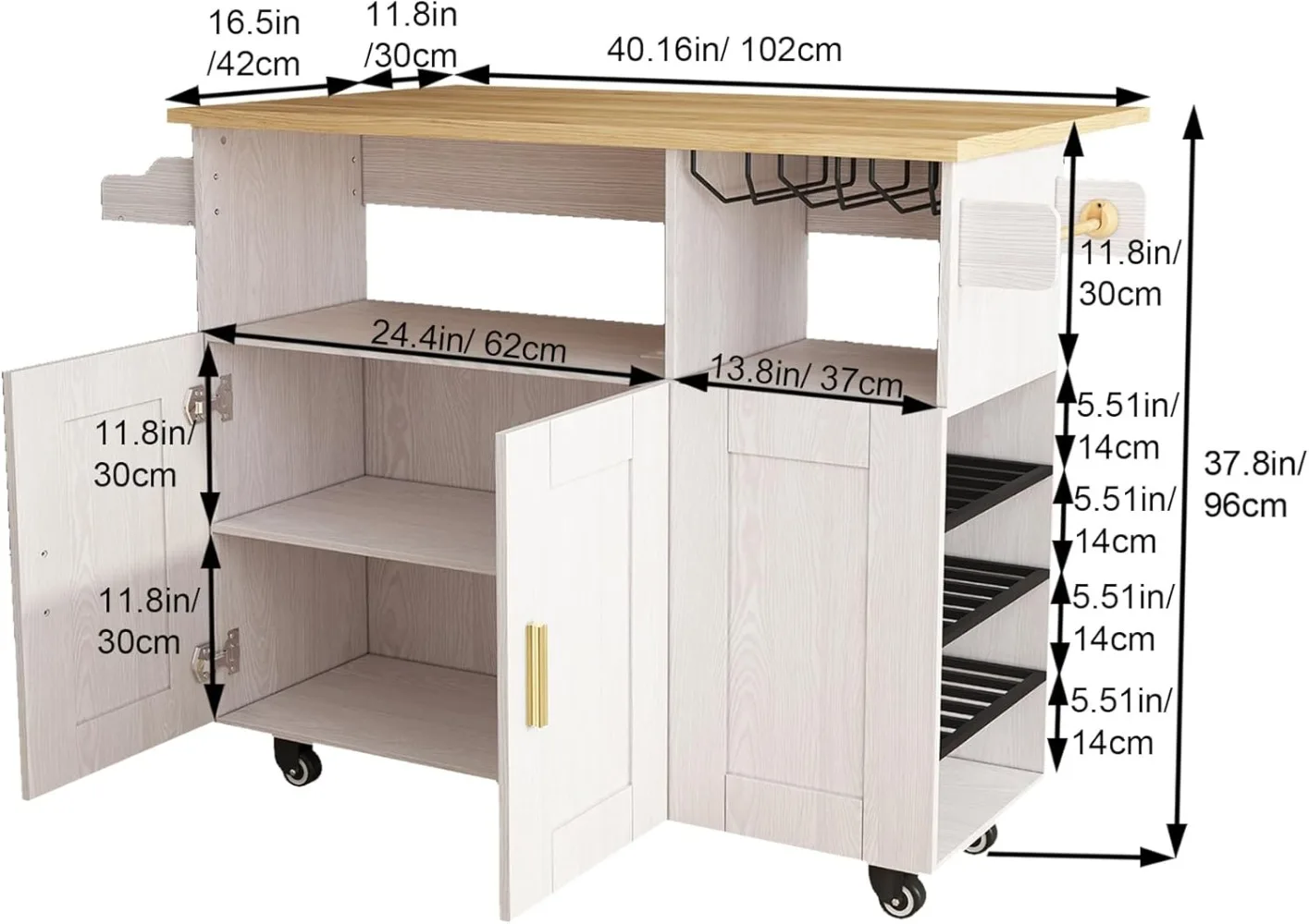 Rolling Mobile Kitchen Island Cart Bar with Desktop Drop Leaf Countertop, Island Table Storage with 5 Wheels, Kitchen Cabinet